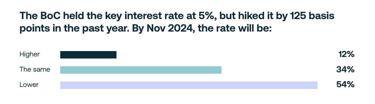 Figure 1 - Looking ahead to November 2024, webinar attendees were asked if they expect key interest rates to be higher, the same, or lower.