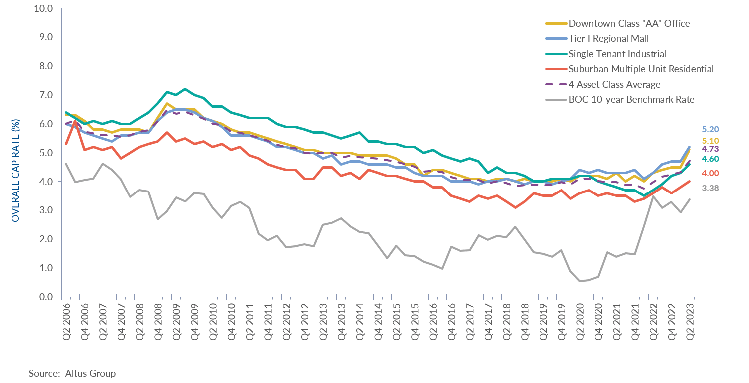 This continued market slowdown can be attributed to rising interest rates, inflationary pressures and financing challenges slowing down investment activity and driving up cap rates across all four major asset classes